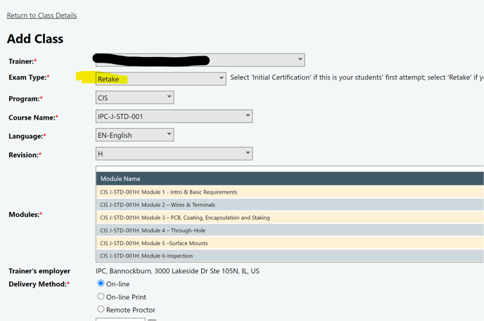Create a new class using RETAKE* as Exam Type and enroll the student