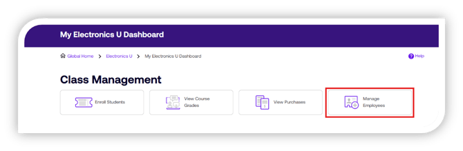 - This will bring you to the dashboard for the Education Portal. Under Class Management, click Manage Employees.