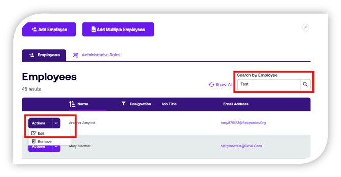 - You can search for any name in the Employee Directory. Once a user has been found, click Actions before their name. A drop-down menu will appear; choose Edit.