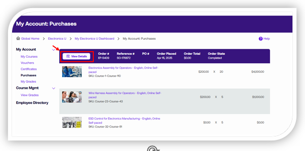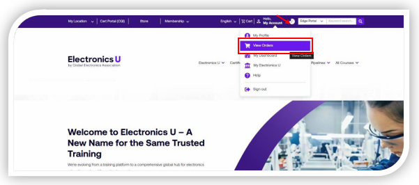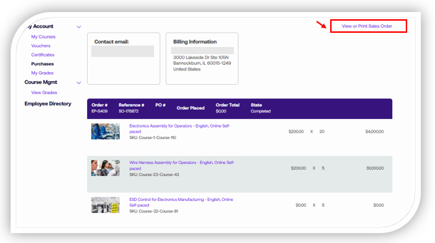 To access your purchase history of IPC workforce training courses and to download or print the Sales Order/Receipt.
