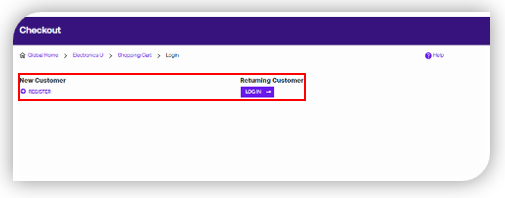 - Select the Checkout button, and you will be directed to Log In with your existing credentials. If you are a New Customer, select the Register button.