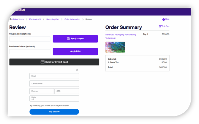 - Debit or Credit Card—Enter your Debit or Credit Card Details. This section also utilizes the PayPal system. If PayPal is unavailable in your country, you may purchase Workforce Training Vouchers through our Customer Service department at contact@electronics.org or +1 847 615 7100.